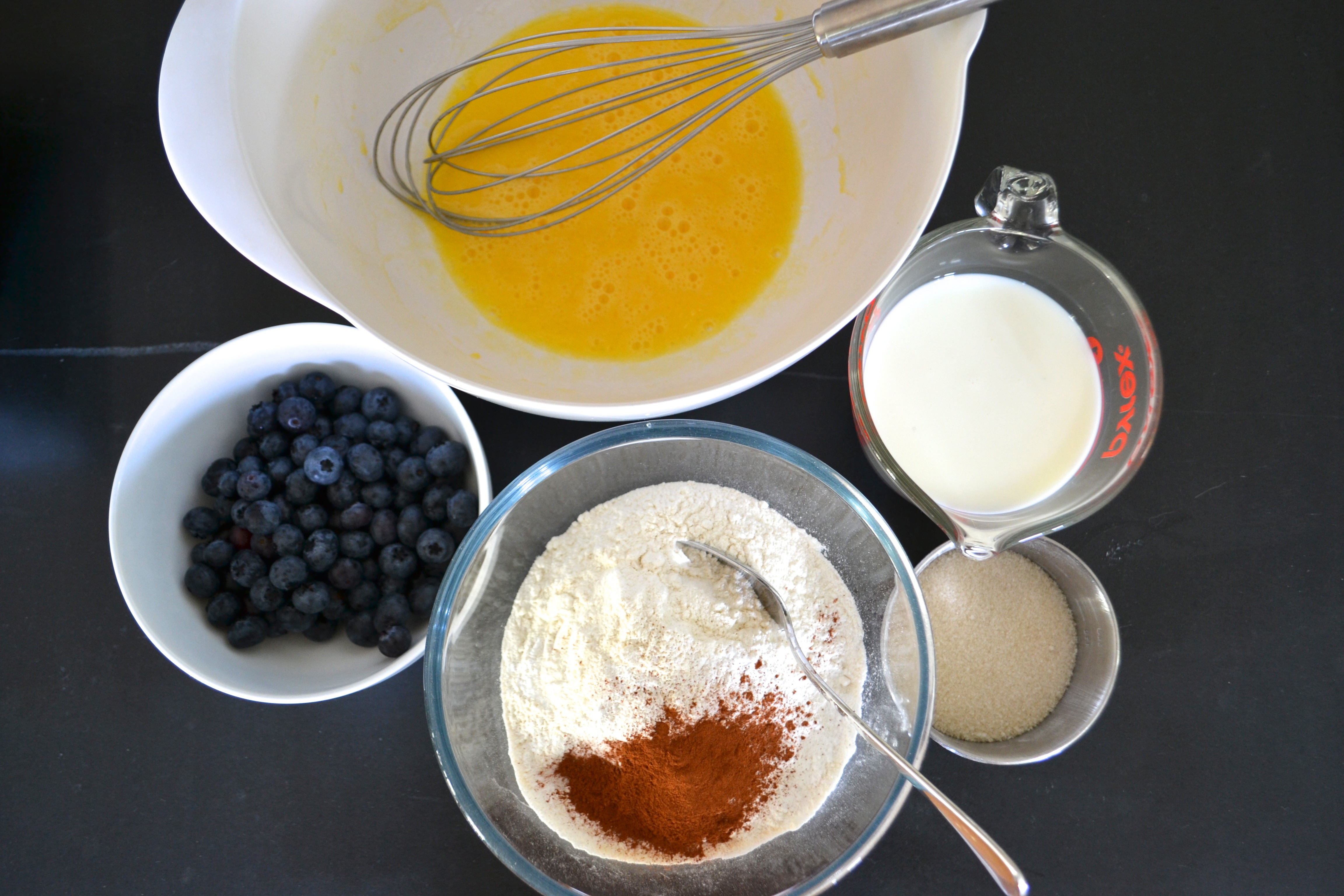 In a medium bowl, toss together the dry ingredients (this does not include the blueberries).