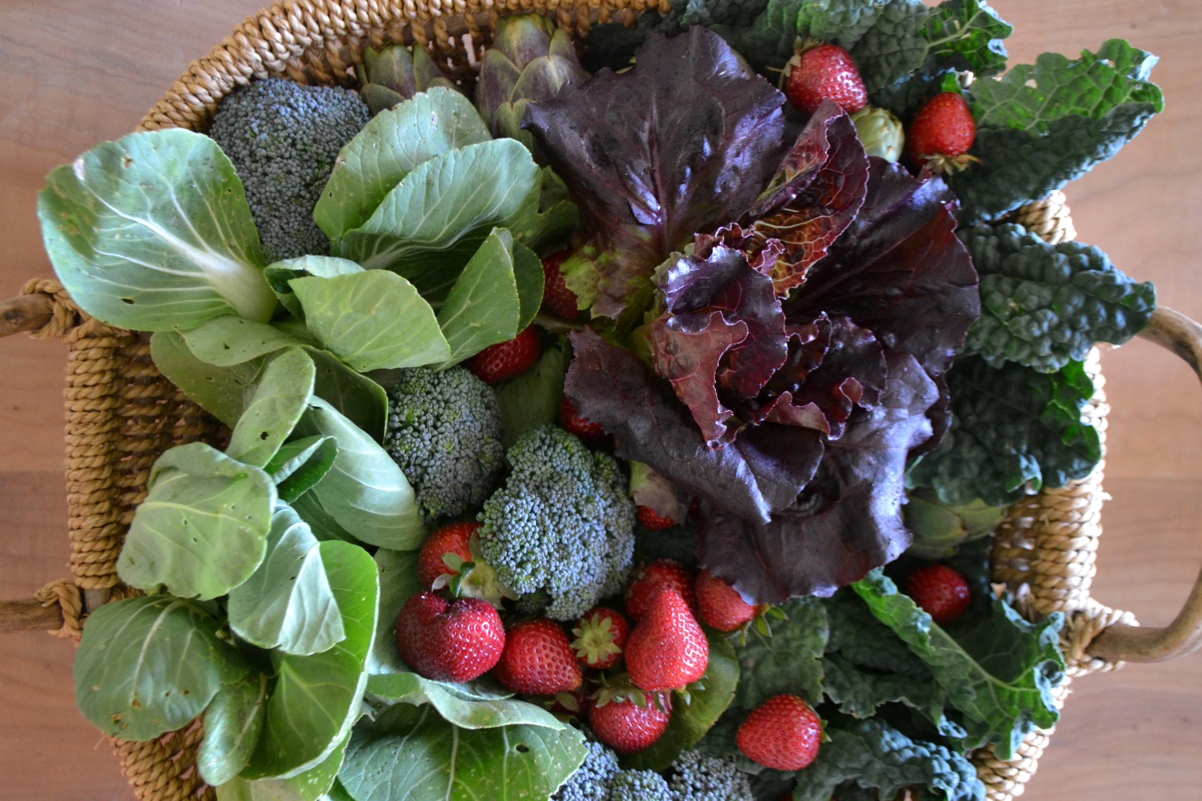 Last Sunday, for Mother’s Day, my family and I drove half an hour north and half an hour west to our favorite organic U-Pick farm, Bloomfield Farms. In celebration of Mother’s Day, the farm had arranged for a local chef to prepare brunch. I’m sorry I forgot to snap I picture of my meal because it was divine–braised baby artichokes served alongside creamy polenta with local cheese, and topped with poached eggs sprinkled with thyme. I had meant to photograph my meal, but I was so hungry by the time I sat down to eat that I forgot entirely. (We didn’t make it to the brunch until after we had picked kale, chard, fennel, leeks, strawberries, bok choy, artichokes and little gem lettuces–enough to fill two huge shopping bags.