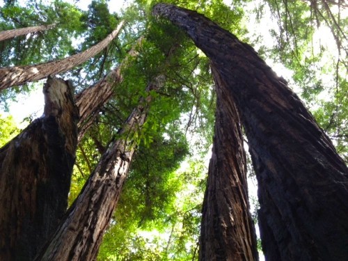 We just enjoyed a quick family weekend in Santa Cruz, Calif. It’s less than a 2 hour-drive from our home if the traffic through San Francisco is cooperative. We went so my husband could surf, but we ended up just playing on several beaches (there are many incredible beaches all along the way depending on which route you follow), and taking a stroll through the national park just outside of town, where we saw (and hugged!) some amazing old-growth redwoods. I just had to include a picture of some of the redwoods, because we saw the most incredible sight–normally “stick” straight redwood trees twisted by earthquakes.